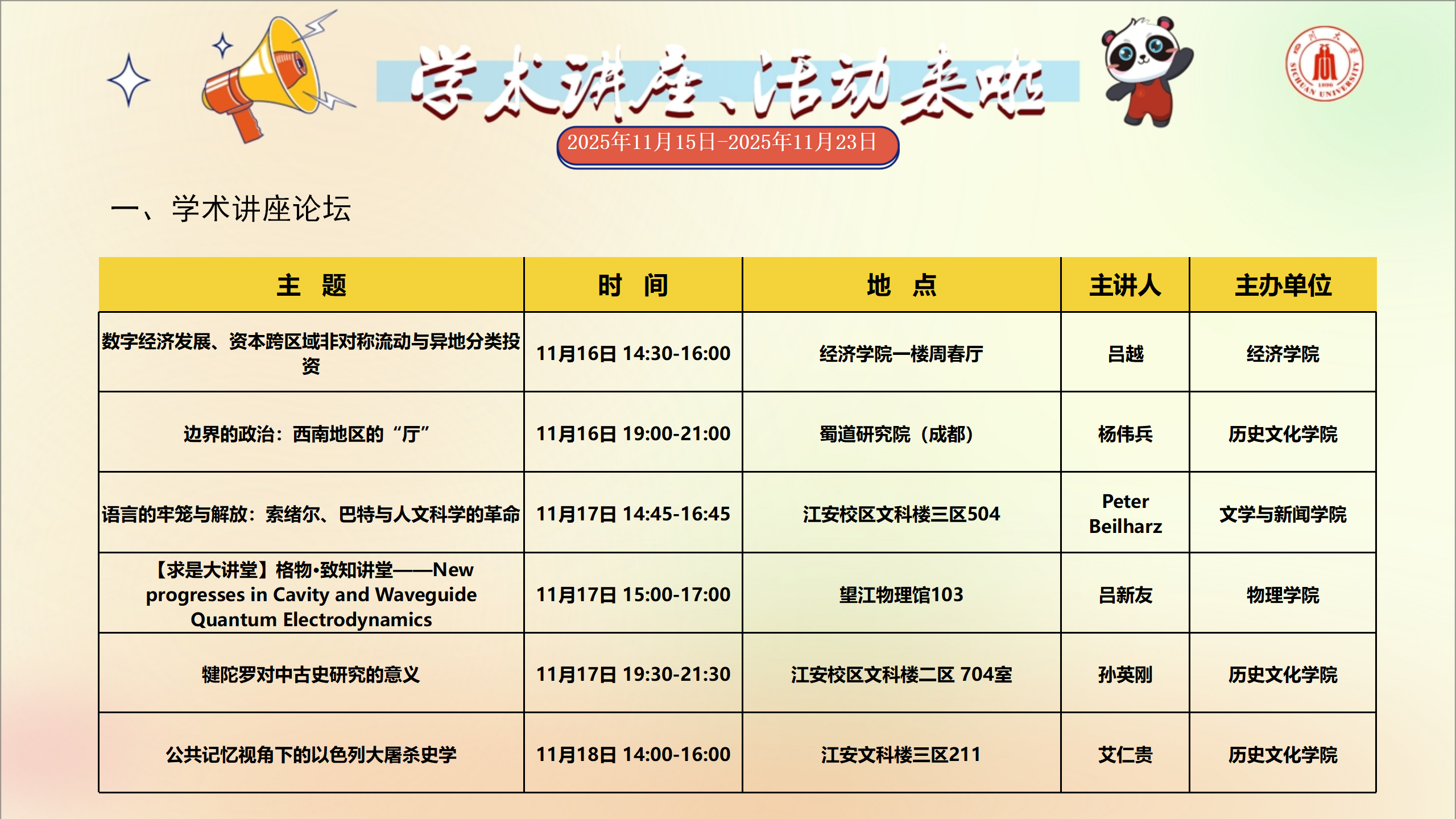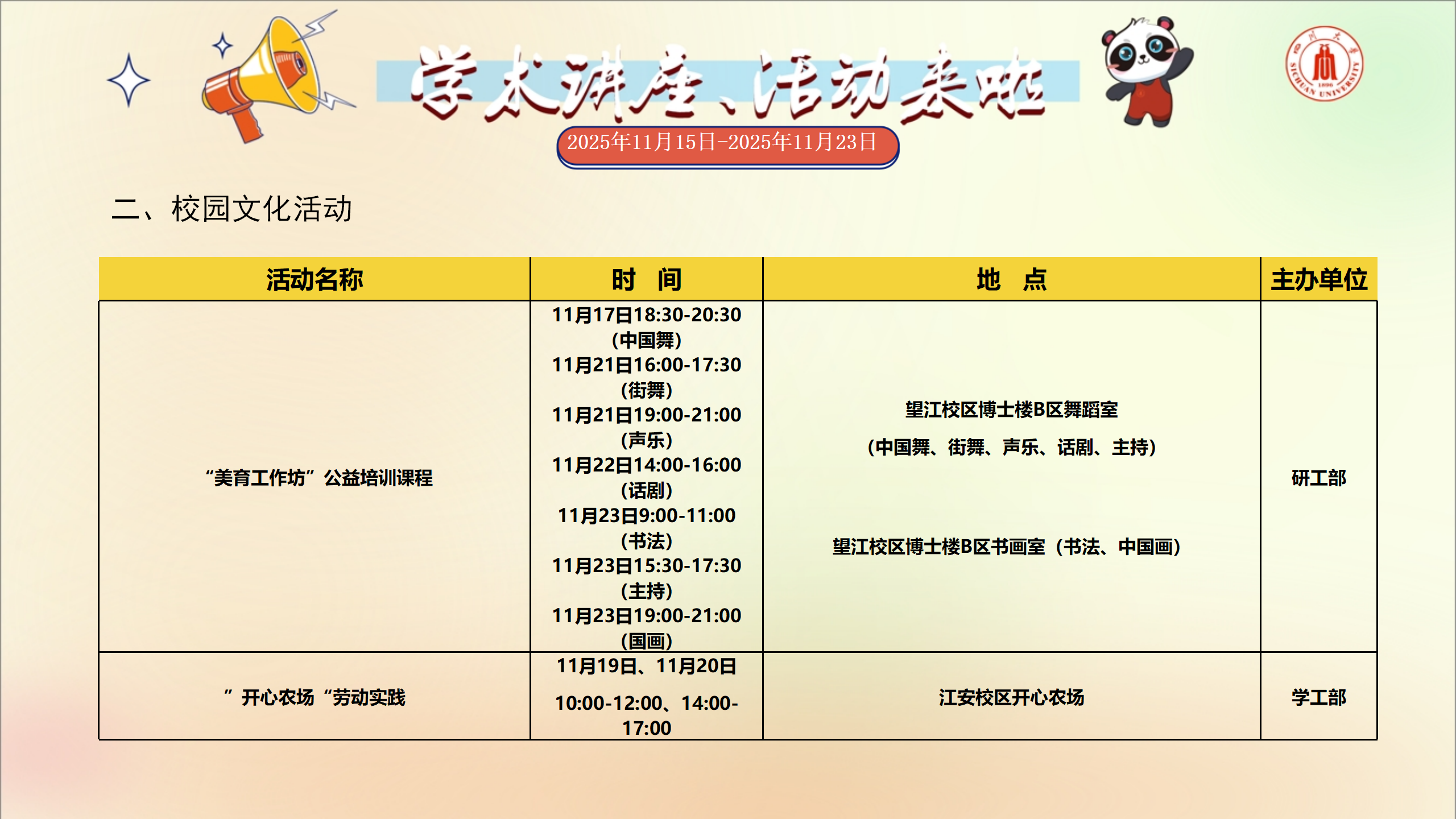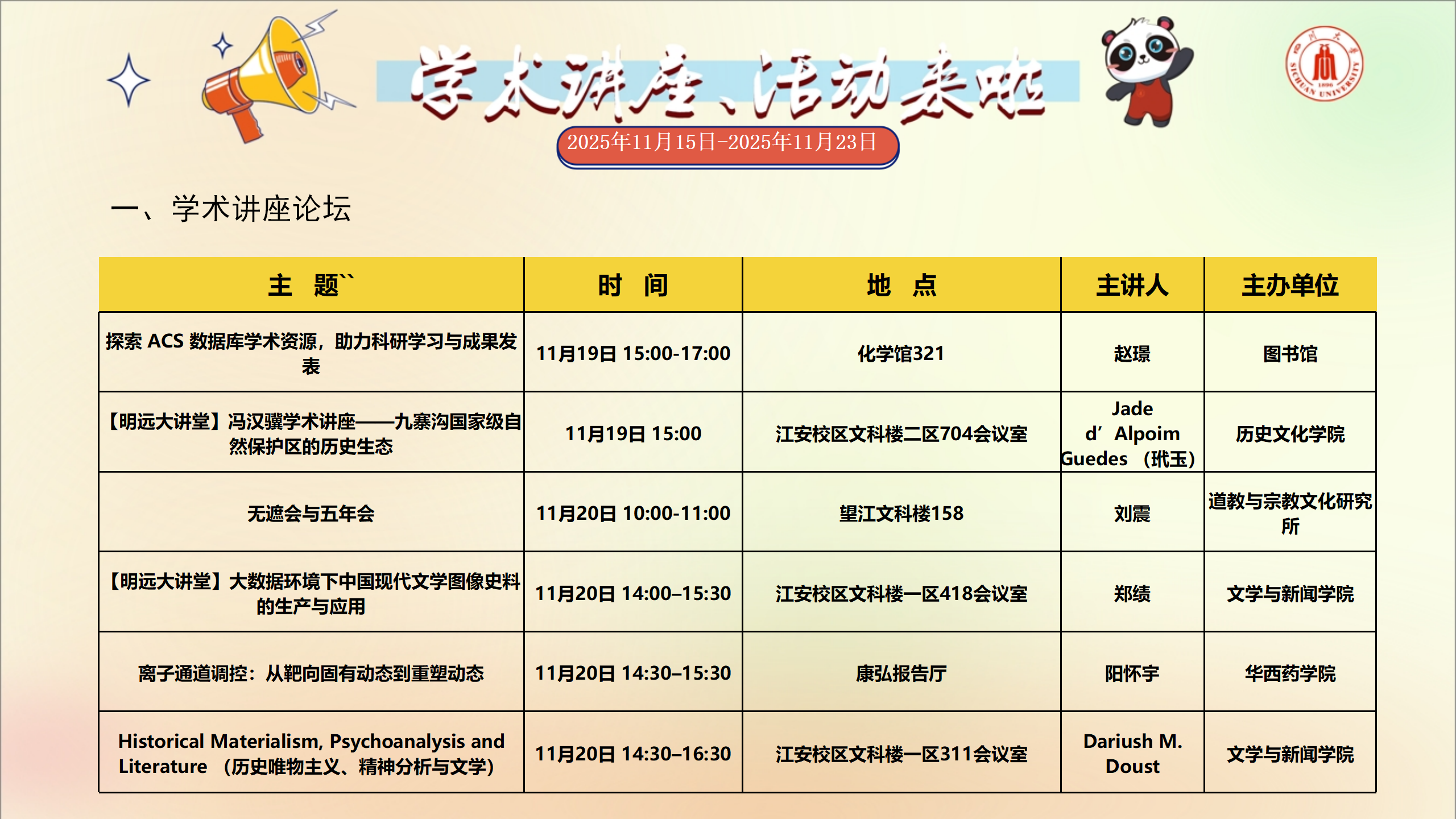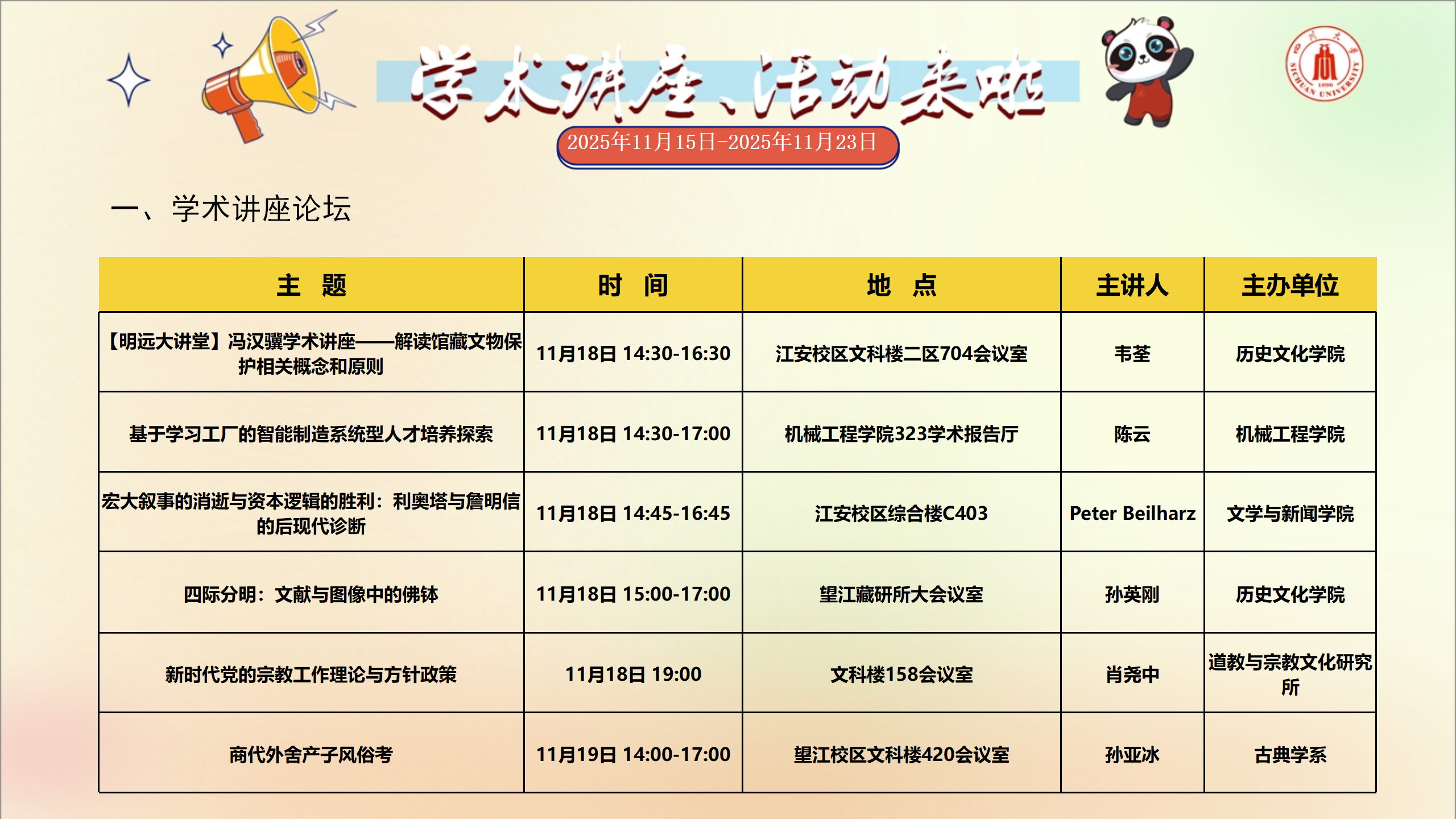 学术讲座及校园活动文化预告(11月15日-11月23日)