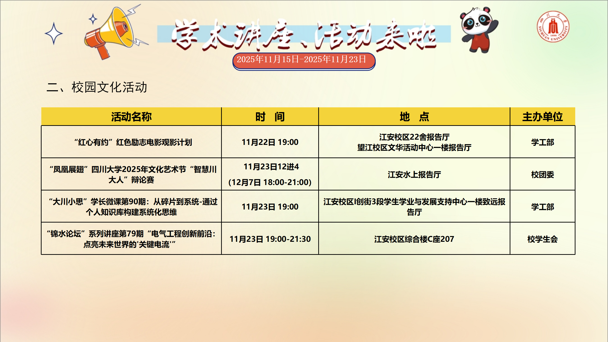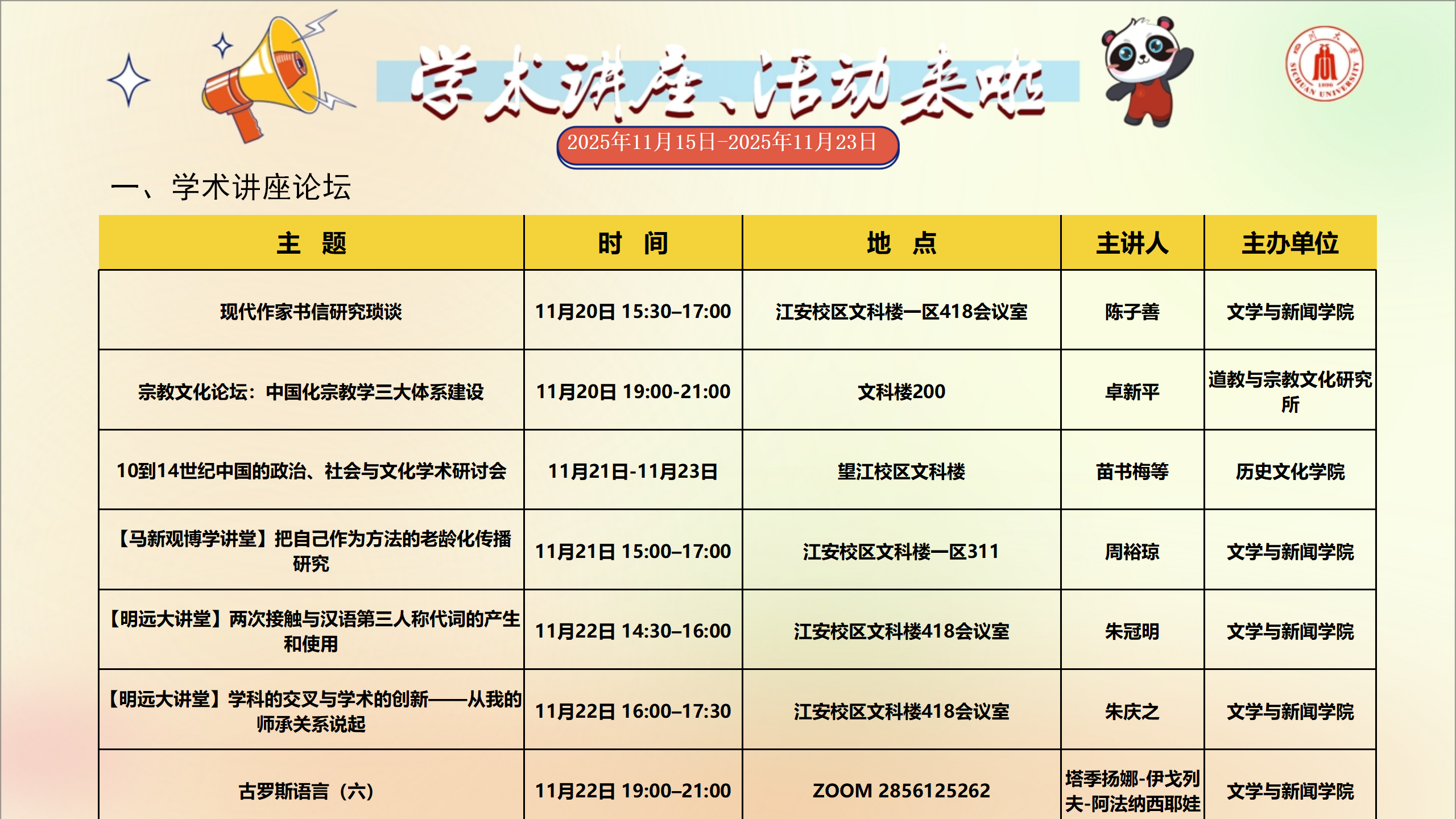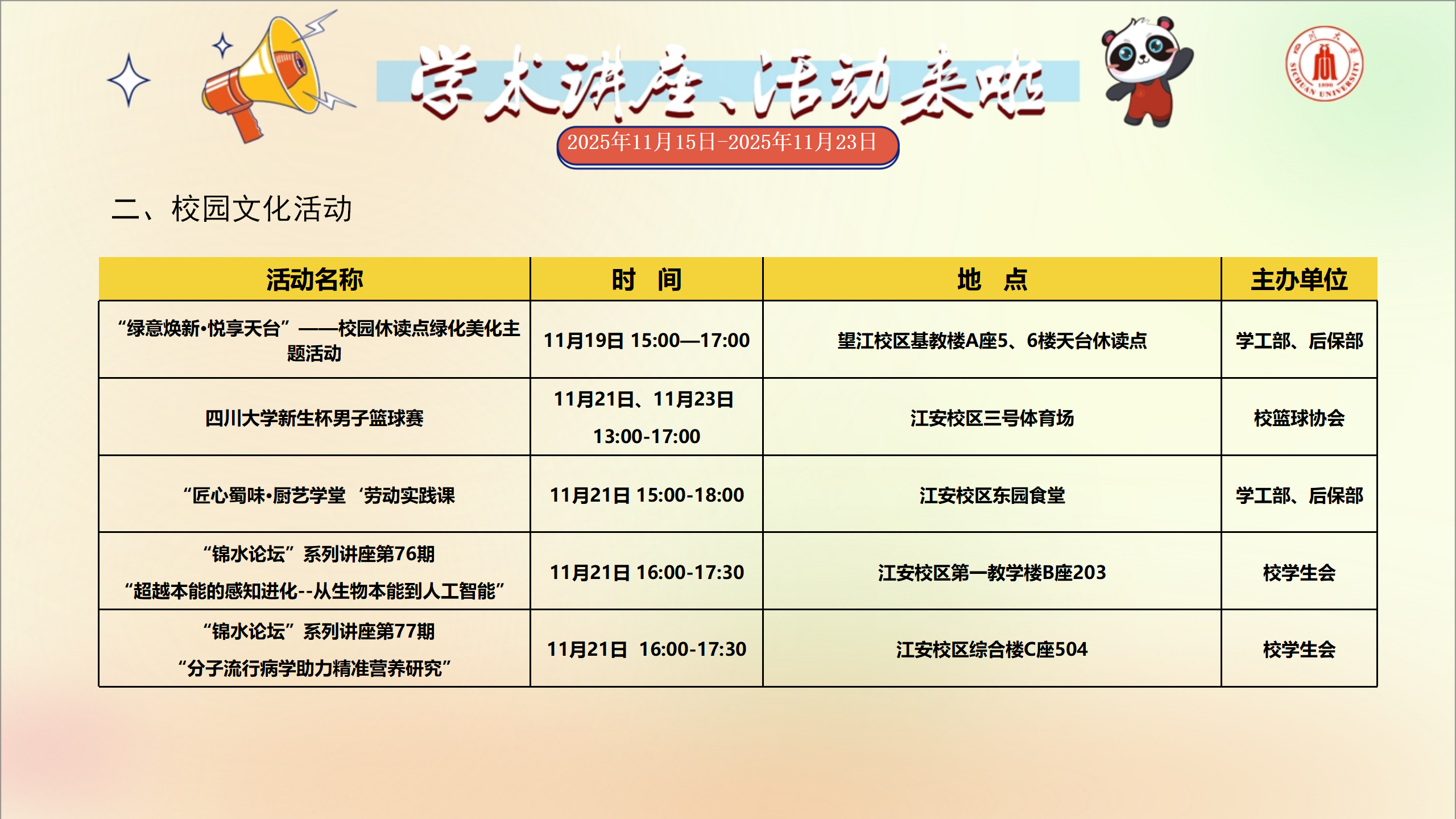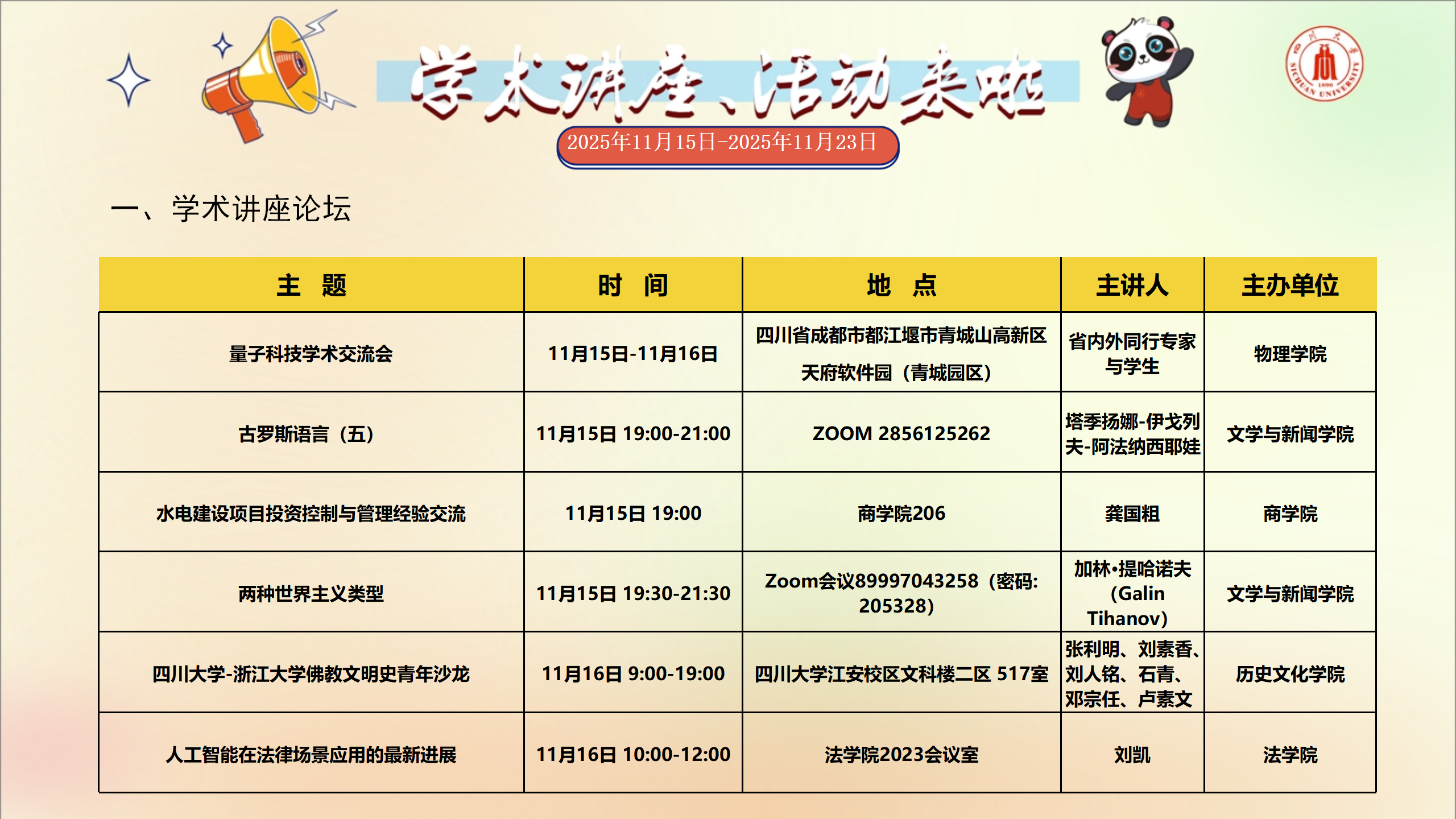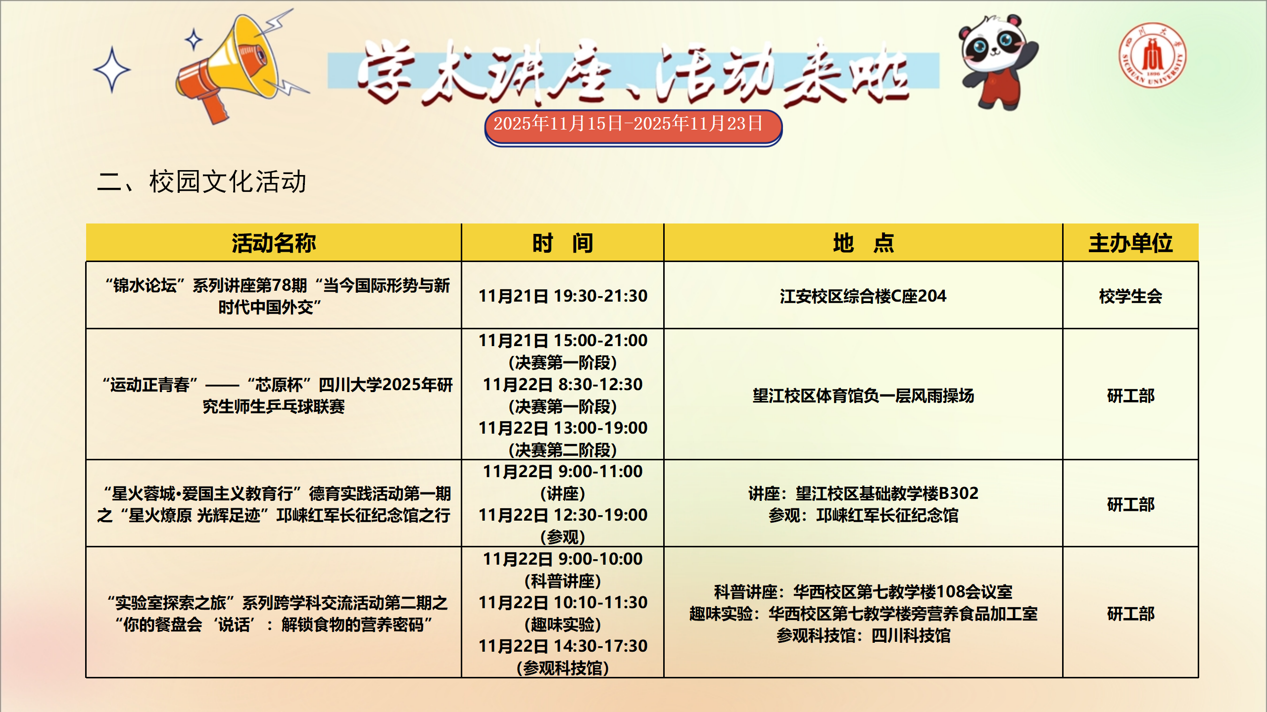 学术讲座及校园活动文化预告(11月15日-11月23日)