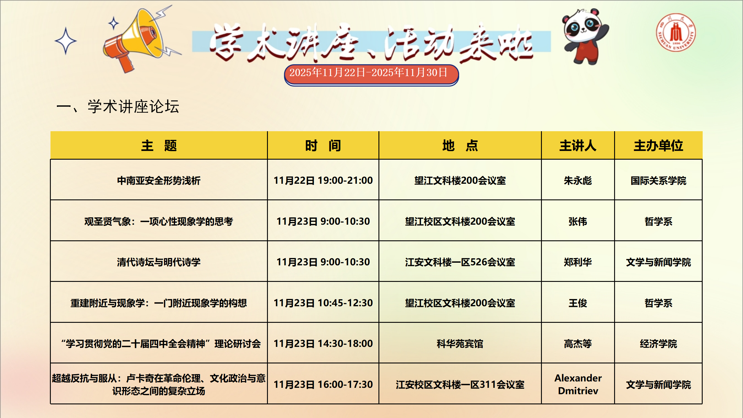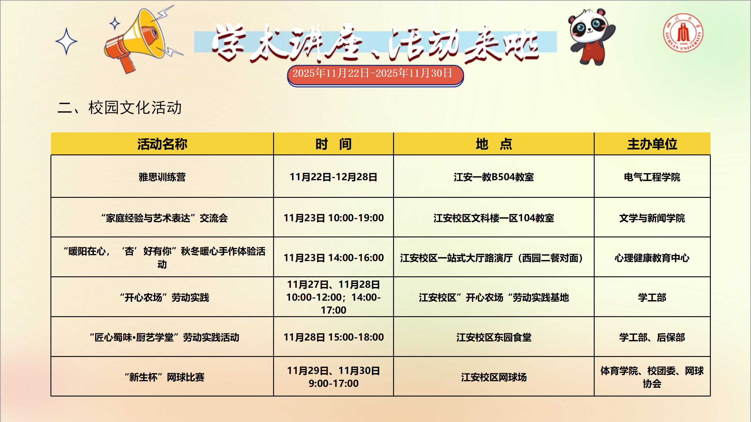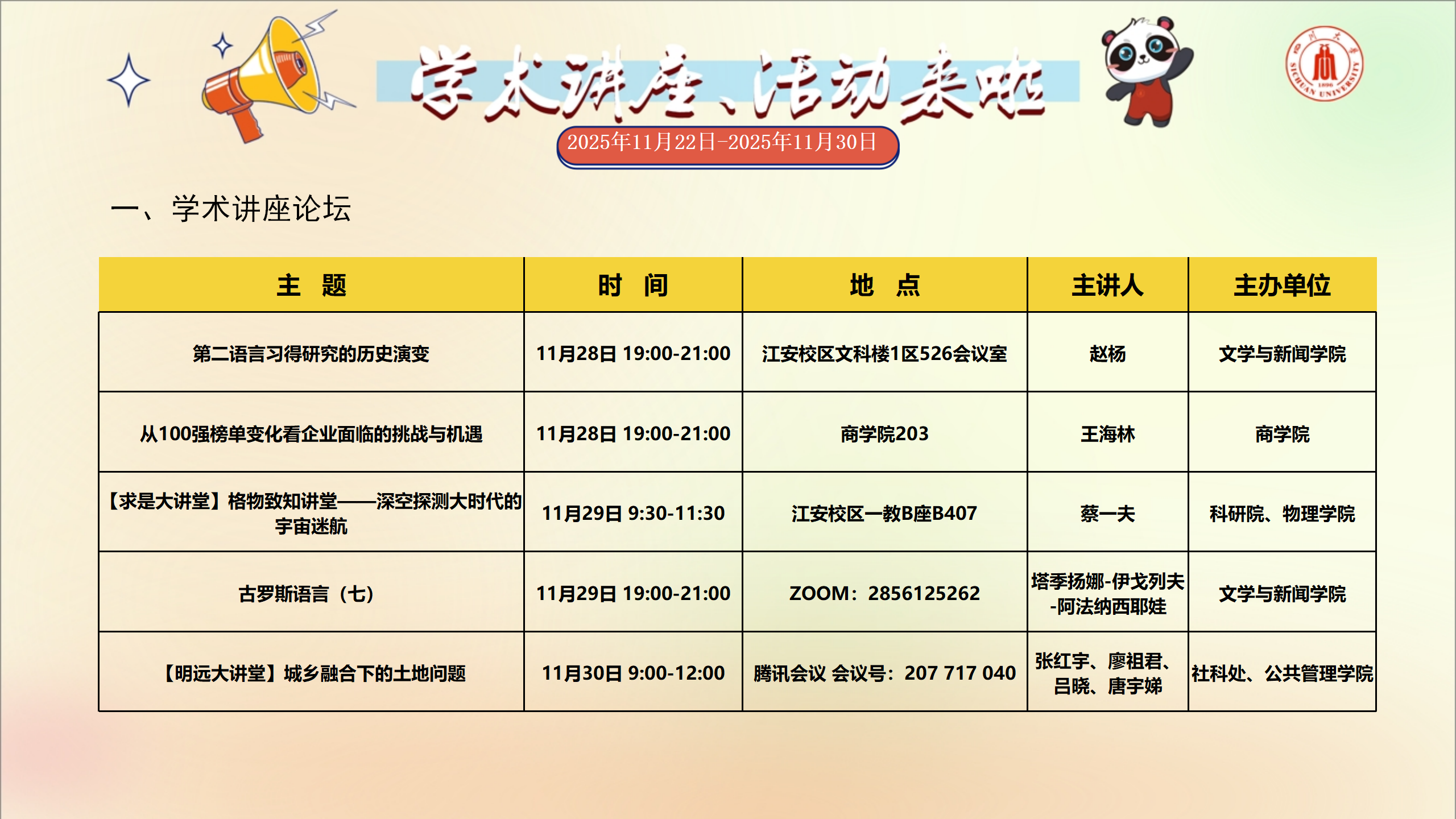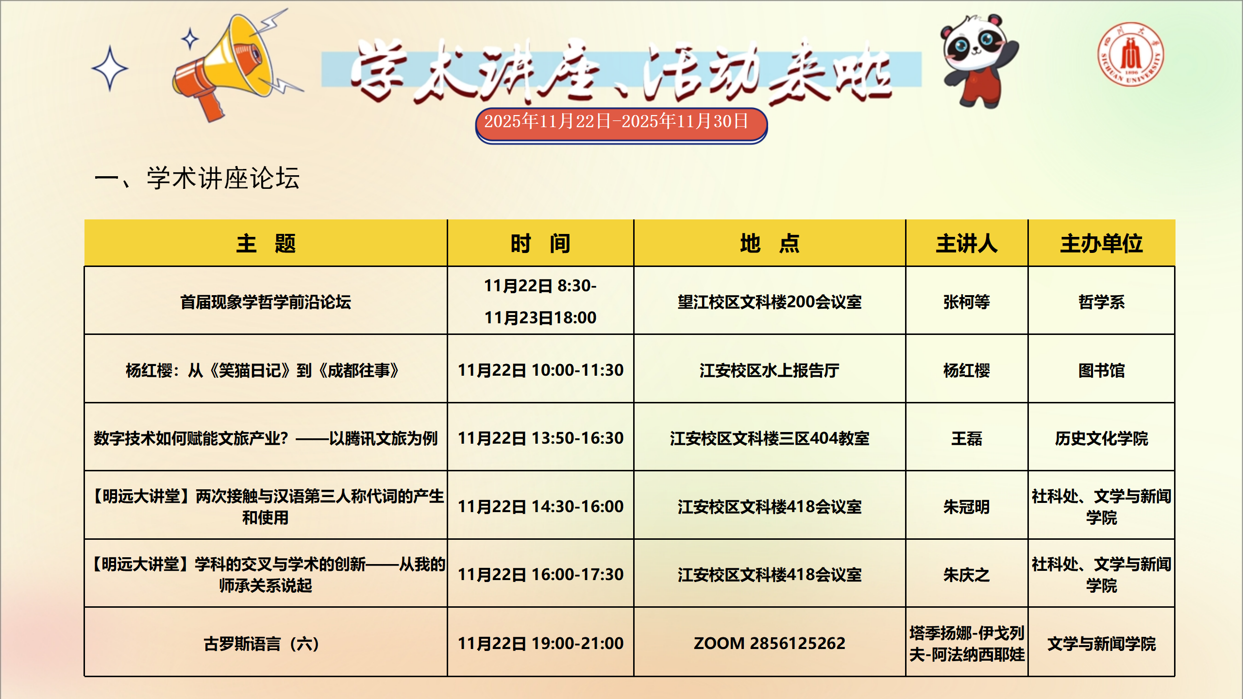 学术讲座及校园活动文化预告(11月22日-11月30日)