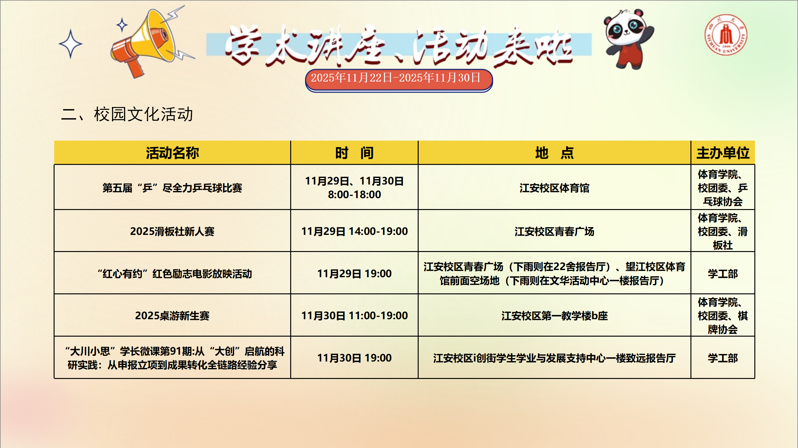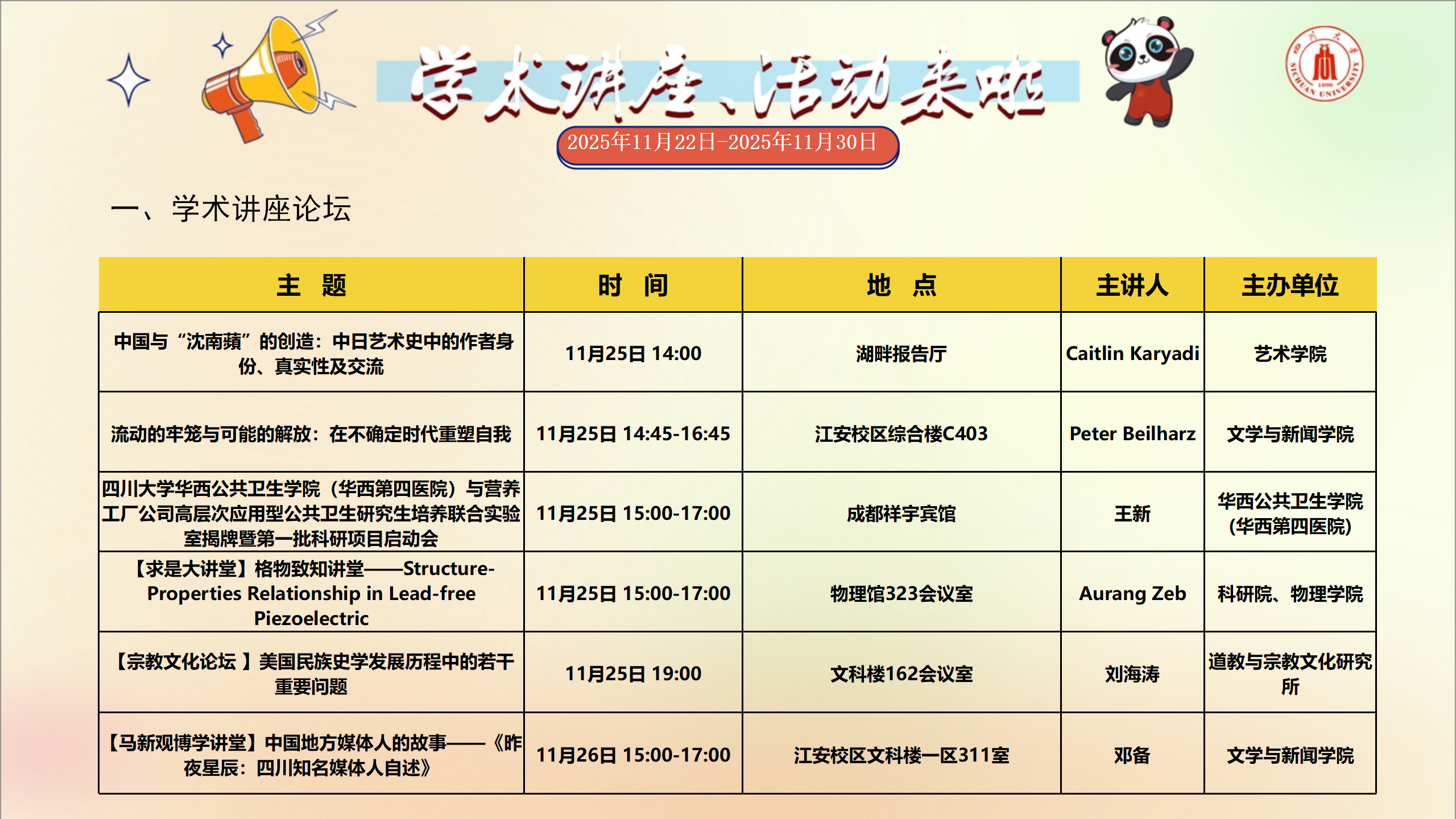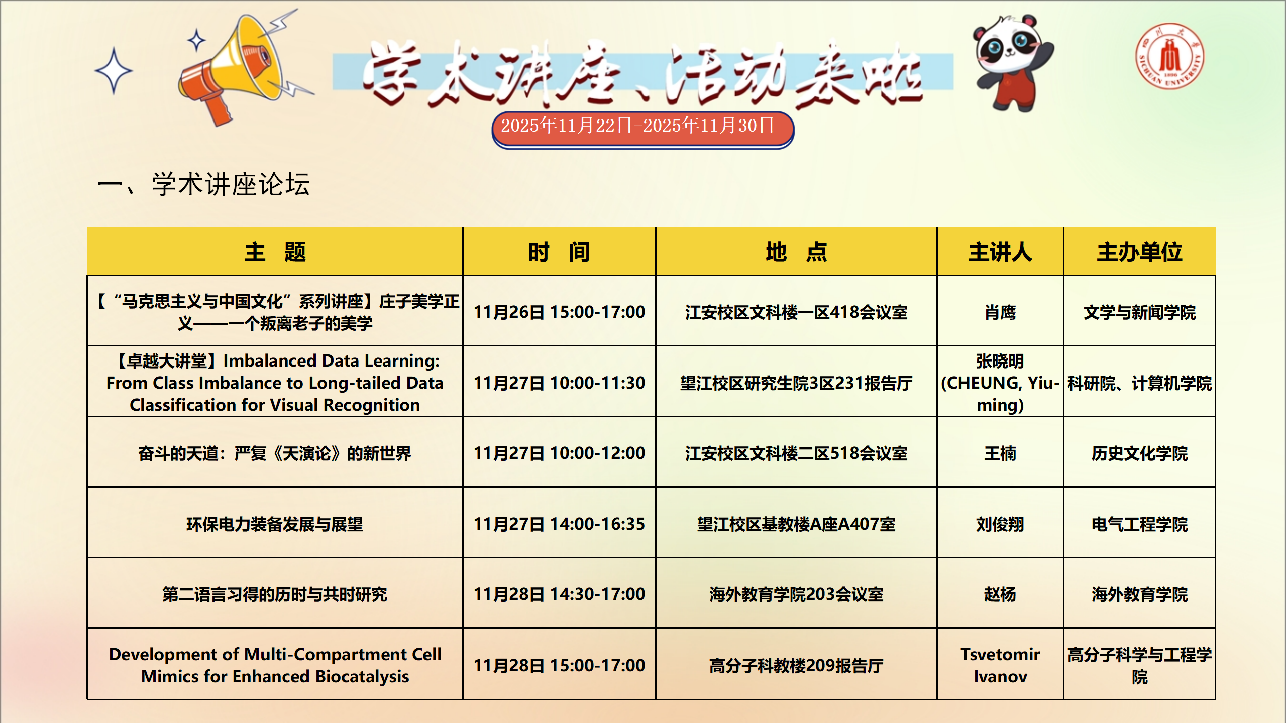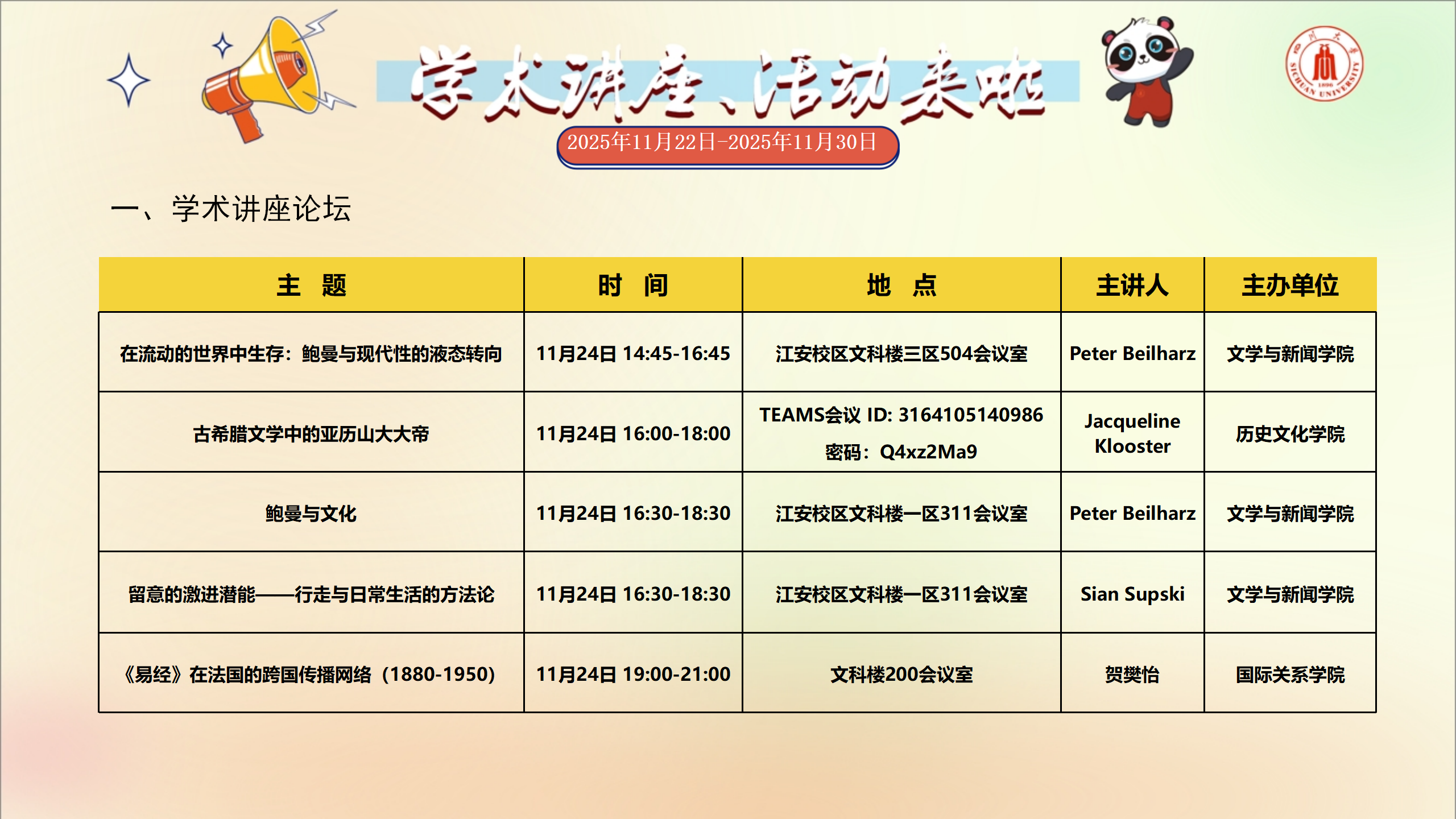 学术讲座及校园活动文化预告(11月22日-11月30日)