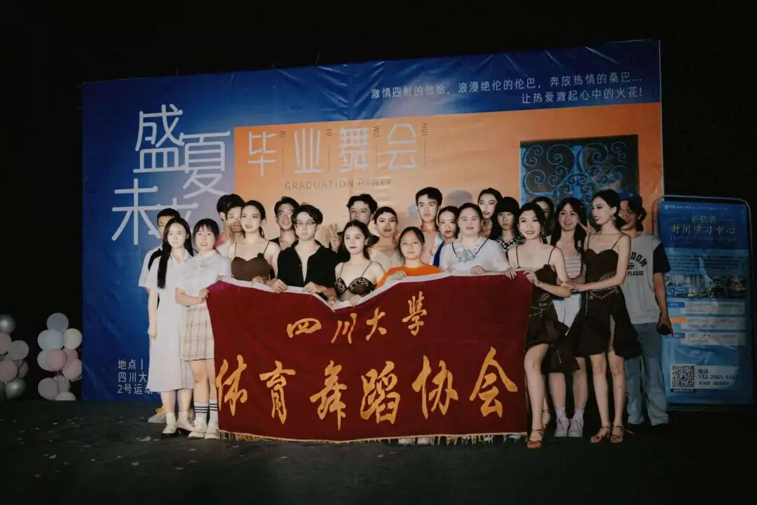四川大学体育舞蹈协会成立于2002年,是校内唯一专业的体育舞蹈社团。在袁志华、王芳老师的指导下,协会以“以舞会友,传递热爱,舞动青春,绽放光芒”为宣言,致力于为所有热爱舞蹈的同学打造一个“零基础也能闪耀”的舞台。