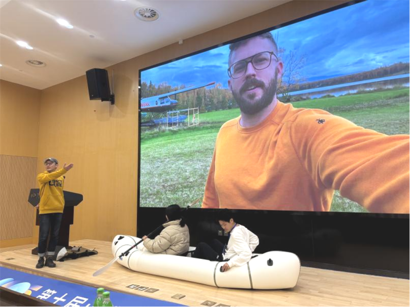 会议当晚还增设了主题科普单元。《中国自驾地理》总编李勇先生通过《全路况自驾旅行安全技能讲座》,结合实际探险与野外拍摄经验,系统阐述了复杂地形下的行车风险评估、车辆准备与应急处理流程。俄罗斯伏尔加格勒国立体育学院科学与教育学院院长德尼斯·亚历山德罗维奇·布鲁哈诺夫就俄罗斯皮划艇训练系统与民众参与水上运动情况进行了科普介绍。MRS团队通过影像叙事、皮划艇设备现场展示,彰显了山地户外运动所蕴含的探索精神与生态尊重。