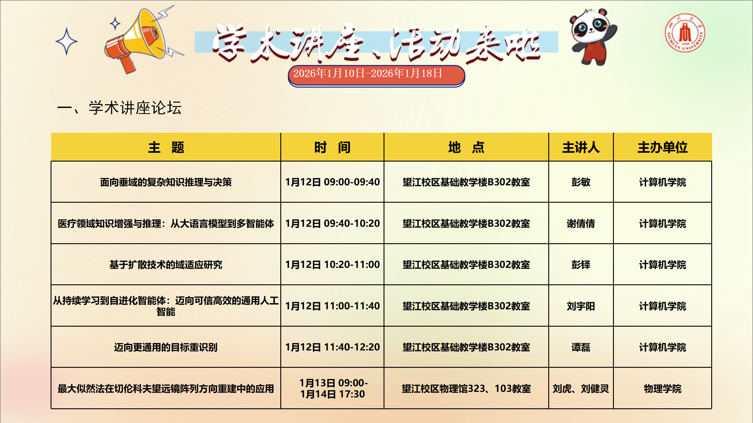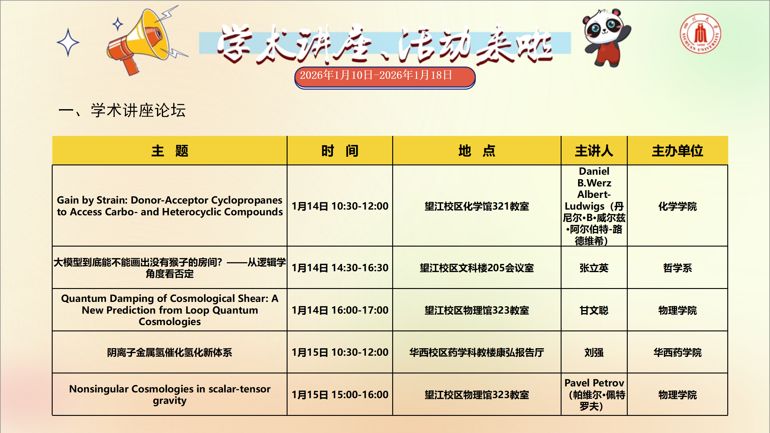 学术讲座及校园活动文化预告(1月10日-1月18日)